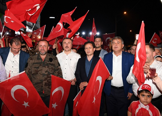 Darbe girişiminin yaşandığı saatlerde Cumhurbaşkanı Recep Tayyip Erdoğan’ın çağrısı ile sokağa çıkan vatandaşlar, her bir adımında tarihe altın harflerle yazılacak bir mücadelenin unutulmaz kahramanları oldu. Sokakta cuntacıların tankı ve tüfeğinin karşısında göğsünü siper eden vatandaşların bu inançlı duruşu hafızalarda yer edindi. O isimler arasında yer alan Şerife Boz ve Mehmet Köse, Tuzla’da Belediye Başkanı Dr. Şadi Yazıcı ve Tuzlalılar ile birlikte demokrasi nöbetine katıldı.