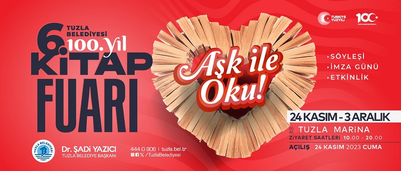 Tuzla Belediyesi tarafından her yıl ‘Aşk İle Oku’ temasıyla düzenlenen Kitap Fuarı’nın 6’ncısı 24 Kasım Öğretmenler Günü’nde kitapseverlere kapılarını açıyor. Cumhuriyetin 100’üncü yılına özel düzenlenen fuarda 400’den fazla imza günü ile yazar-okuyucu buluşması gerçekleştirilecek. Fuar kapsamında ayrıca 50’nin üzerinde söyleşi düzenlenecek. 150’den fazla yayınevinin katıldığı fuar, 3 Aralık’a kadar Tuzla Marina’da açık olacak.