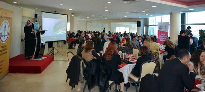 Gönül Elleri Çarşısı hizmetlerinin Kadın Kent Gönüllüleri’nin gönüllü çalışmasıyla sürdüğünü hatırlatan Tuzla Belediye Başkanı Dr. Şadi Yazıcı’nın eşi Dr. Fatma Yazıcı, bu süreci daha geniş kesimlere ulaşacak şekilde ilerletmek istediklerini söyledi. Bu hedefe okulların çok ciddi bir katkı sağlayacağına inandığını belirten Dr. Fatma Yazıcı, “Kuvvetlerimizi birleştirmek için bir araya geldik. İhtiyaç sahibi insanlara maddi-manevi yardım elini uzatabilmek için çalışıyoruz. Bunun için güçlerimizi birleştirerek daha büyük bir güç nasıl ortaya koyabiliriz diye düşünüyoruz. Yardıma ihtiyacı olduğu halde sıkılan, çekinen, bizden yardım isteyemeyen ya da bizden haberi olmayan ailelere de ulaşmak istiyoruz. Bunun için her sitede, her sokakta, her mahallede gönüllümüz olsun istiyoruz. Çünkü bunu ancak böyle başarabiliriz. İstemeye utanan bir insanı belediyeye getiremezsiniz. Bir şekilde ona ulaşmak zorundayız. Bu nedenle gönüllü ağımızı ne kadar genişletirsek her sokakta, her sitede gönüllümüz olursa onlar bizim kılcal damarlarımız gibi ihtiyaç sahibinin bize ulaşmalarını sağlayacaktır. Bu nedenle okullar burada en büyük potansiyeli oluşturan birimler. Sizlerden bu anlamda yardım istiyoruz. Bizden haberdar olamayan ya da bize gelmek istemeyen yardıma muhtaç olan insanlara sizler vasıtasıyla ulaşmak istiyoruz” şeklinde konuştu.