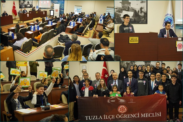 Tuzla Belediye Meclisi’nde gerçekleştirilen toplantıya Tuzla Kaymakamı Ümit Hüseyin Güney, Tuzla Belediye Başkanı Eren Ali Bingöl, İlçe Milli Eğitim Müdürü Metin Çangır, Şube Müdürü Aykut Beşiroğlu ve çok sayıda öğrenci katıldı.