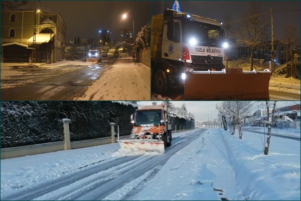 İstanbul’da 4 gündür etkili olan kar yağışı dün akşam saatlerinden itibaren yoğunluğunu artırdı. Kısa sürede tüm İstanbul’u etkisi altına alan kar yağışı, beyaz bir örtü oluşmasına neden oldu. Tuzla Belediyesi ekipleri de gece boyunca karla mücadele çalışmalarını aralıksız sürdürdü. Tuzla Belediye Başkanı Dr. Şadi Yazıcı’nın kriz merkezinde bizzat takip ettiği çalışmalarda 63 araç ve 450 personel hazır bulundu. Tuzla’nın 17 mahallesine gece boyunca aralıksız süren çalışmalar neticesinde olumsuz bir durum yaşanmadı