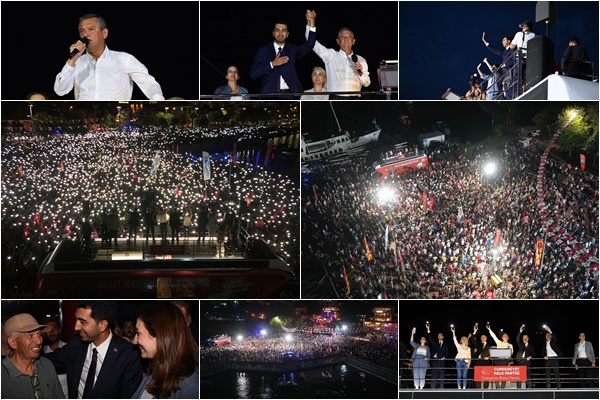 Bu işçi memleketi hep iş cinayetleriyle gündeme gelir. Bir yüzükle siyasete girip daha sonra evlatlarının gemicikleri olan birisi, o bir yüzükle gemiler, gemicikler, servetler olurken, Tuzla'daki vatan evlatları o gemileri yaparken can veriyor. Her gün ölümü soluyor, kanser oluyor, silikozise yakalanıyorlar, can veriyorlar. 23 yılda 30 bin 200 işçinin hayatını kaybettiği iş cinayetlerinin olduğu bu ülkede bu yılın ilk yarısında 961 işçi iş cinayetlerine kurban giderken, yani ilk 6 ayda 3 tane Soma faciasını birden bu ülkede yaşamışken, halen daha sermayeyi duyup, onların üretim hırsını baskılamamak için gerekli tedbirleri almayanlara karşı Tuzla Meydanı'ndan söylüyoruz. İktidarımız elbette zenginlik getirecek, yoksulluğu, işsizliği bitireceğiz. Elbette ki ülke kazanacak, patronlar kazanacak ama hem adil bölüşeceğiz hem bu ülkeyi kötü ölümler, ucuz ölümler, kolay ölümler ülkesi olmaktan çıkaracağız. And olsun ki çıkaracağız. Dünyanın pek çok ülkesinde artık iş kazalarında ölüm tarihe karışmaktayken, işçinin bu kadar canının, alın terinin değersiz olduğu bir ülkeyi kabul etmiyoruz, asla hazmetmiyoruz. Birileri fildişi kulelerinden, saraylarından, o serin salonlarından kibirli kibirli yukarıdan bakarken, bu düzeni kuranlara sesleniyorum. Sizinle meselemiz var. Emekçiler ezilecek, sömürülecek değil, kıymetleri bilinecek, emeklerinin karşılığı verilecek, örgütlenmelerine saygı duyulacak insanlar. Onlara tepeden karınca gibi gören bu rejime sesleniyorum. Karıncanın kardeşi var o da CHP'dir.