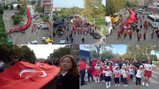 Tuzla’da 29 Ekim kutlamaları kapsamında yüzlerce öğrencinin katılımıyla 350 metrelik dev Türk bayrağı kortej yürüyüşünde taşındı. Tuzla Belediyesi ve Tuzla İlçe Milli Eğitim Müdürlüğü tarafından düzenlenen etkinlikte çocukların heyecanı, Cumhuriyetin yeni yüzyılı için duydukları mutluluk ve gurur yüzlerine yansıdı.